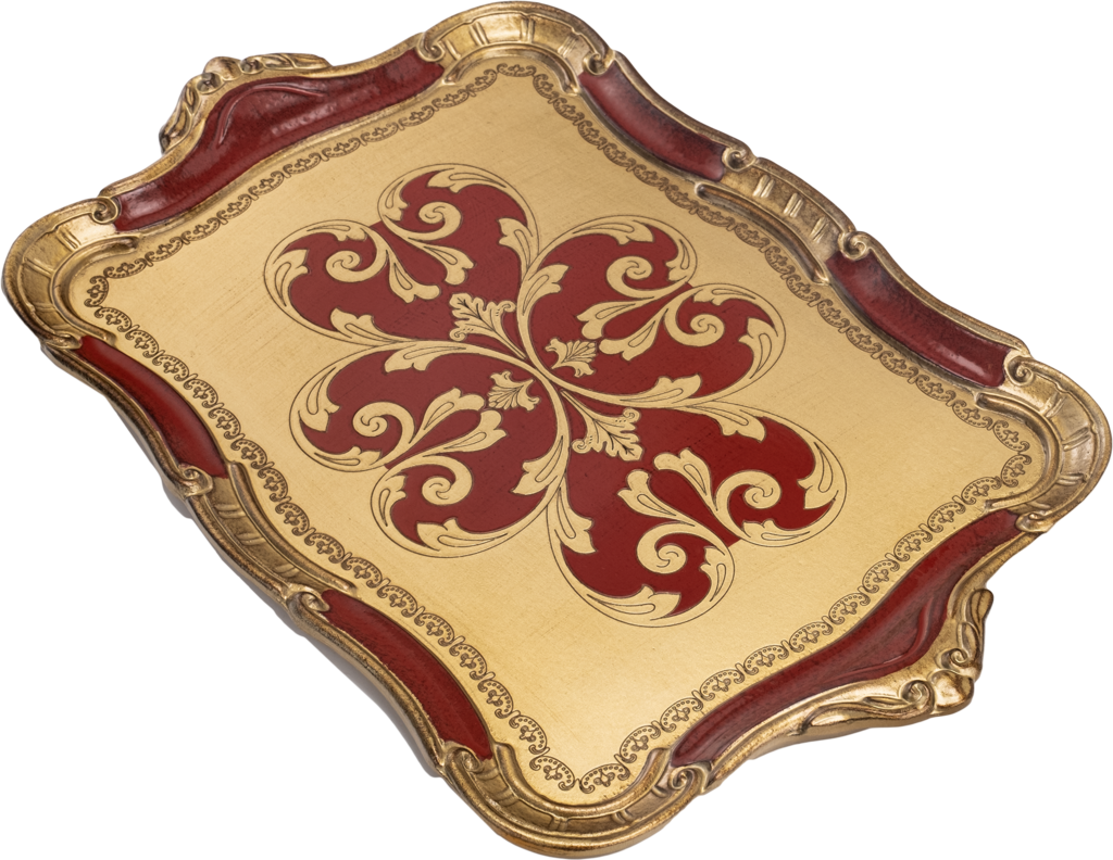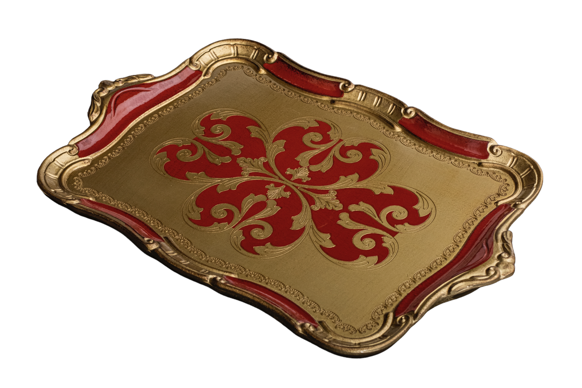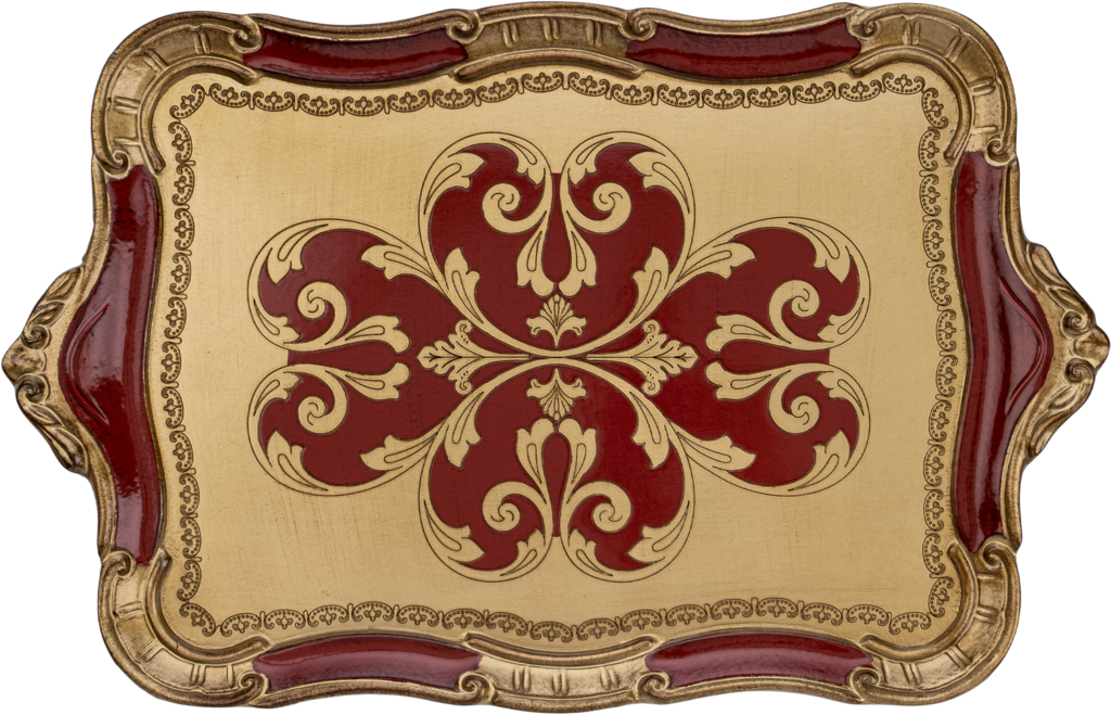 Handcrafted traditional Florentine pattern tray with handle in Gold & Burgundy finishing.