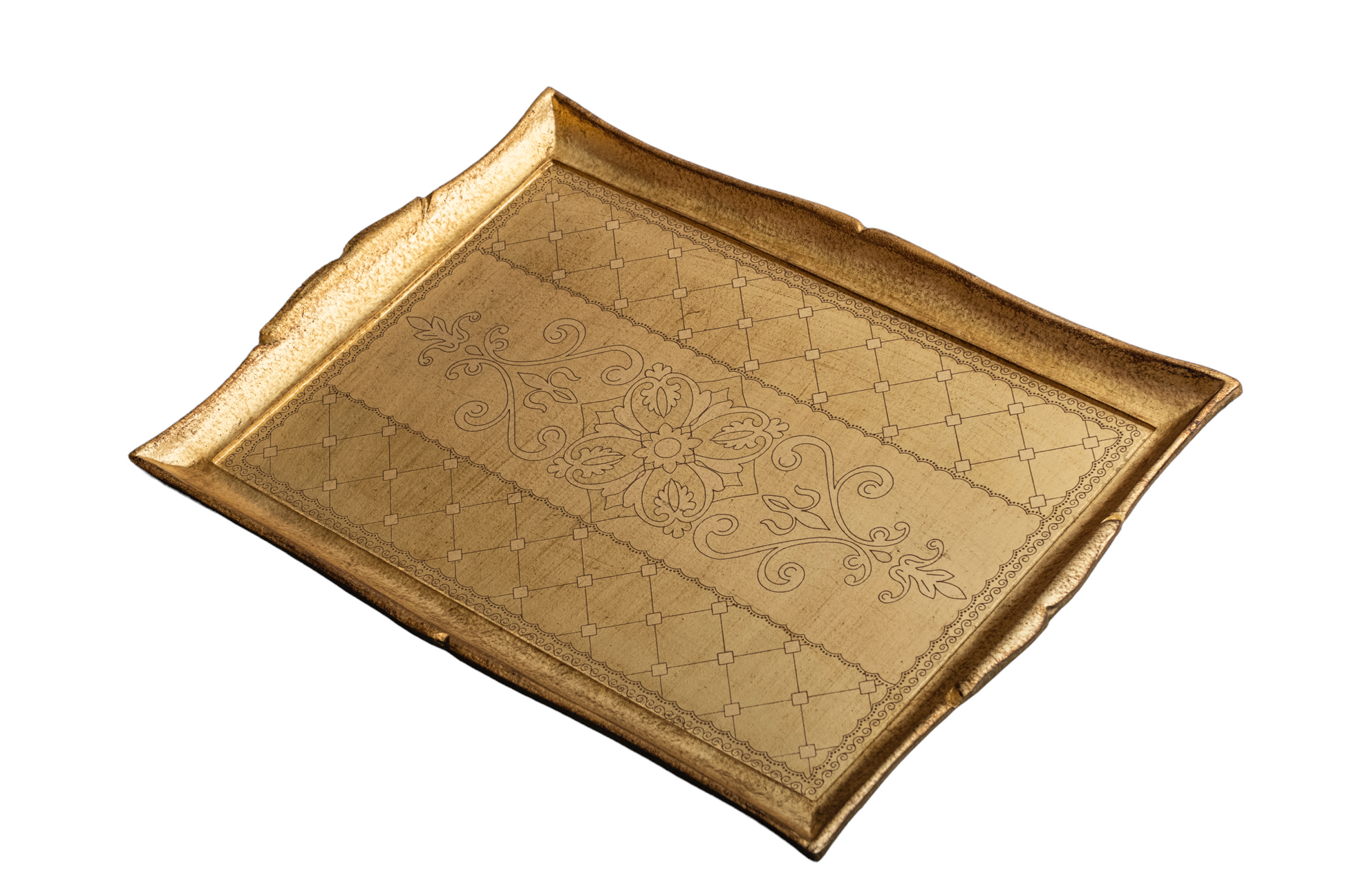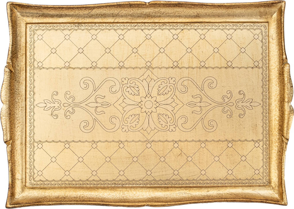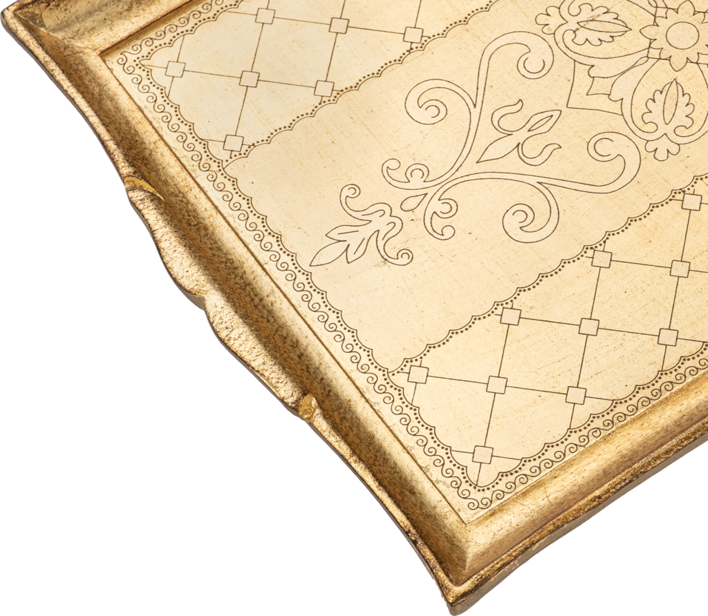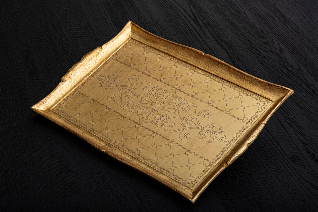 Handcrafted arabesque pattern tray in Pure Gold finishing.