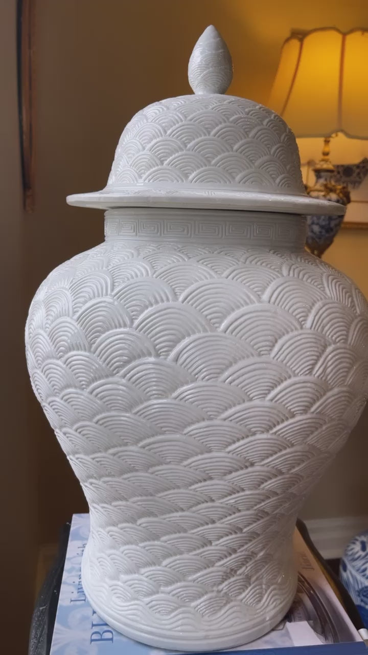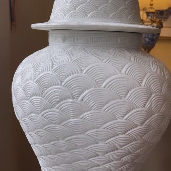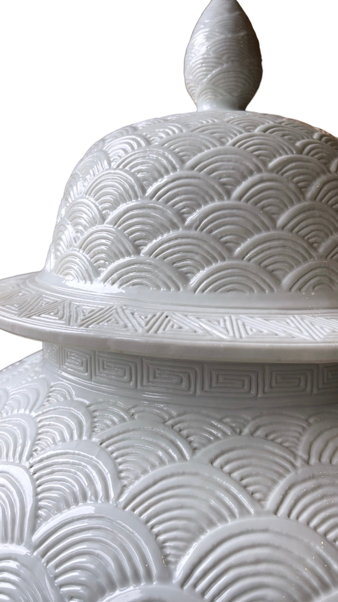 Giant White Floor Standing White Ginger Jar with an owl pattern to decorate your home.