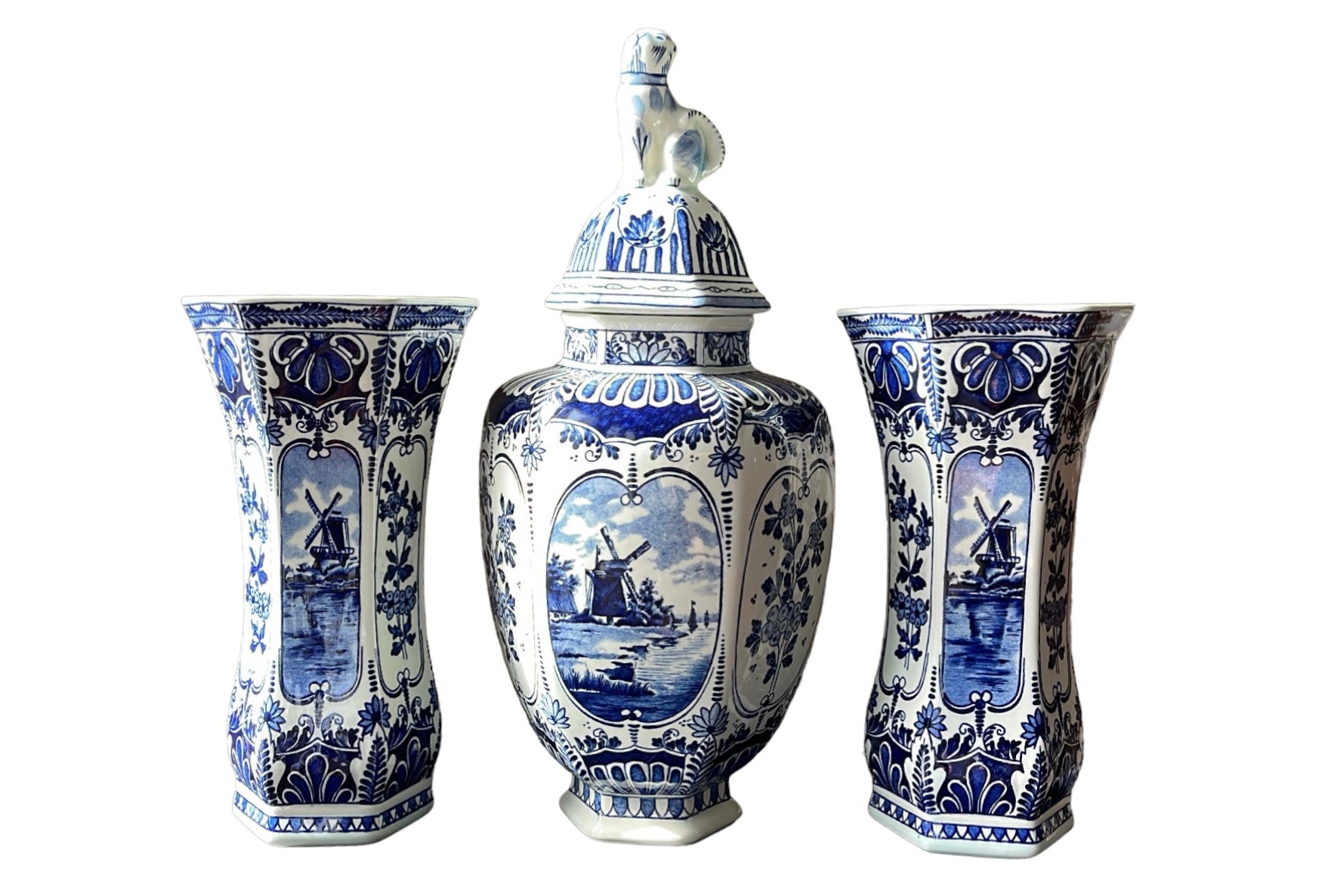 20th Century Triple Set Ginger Jar FOO Dog by BOCH ROYAL SPHINX HOLLAND