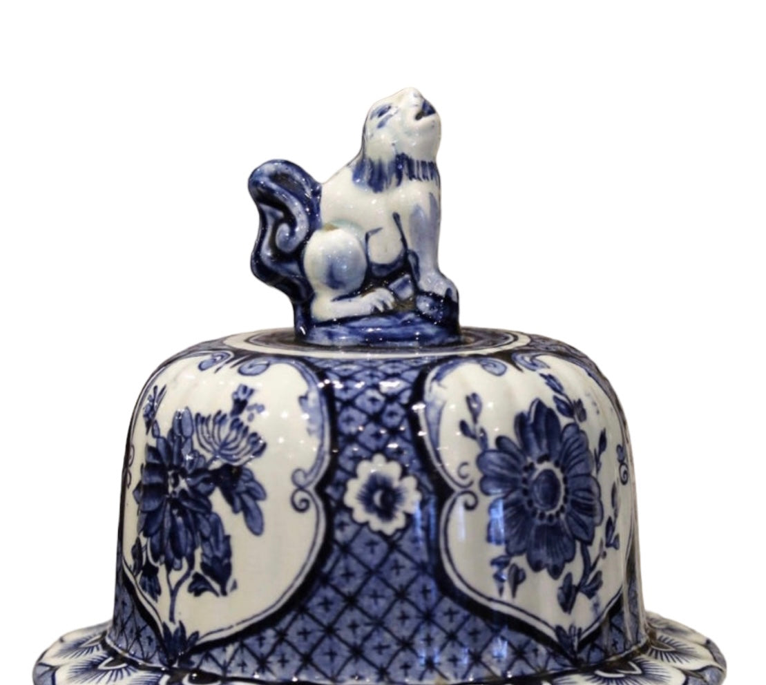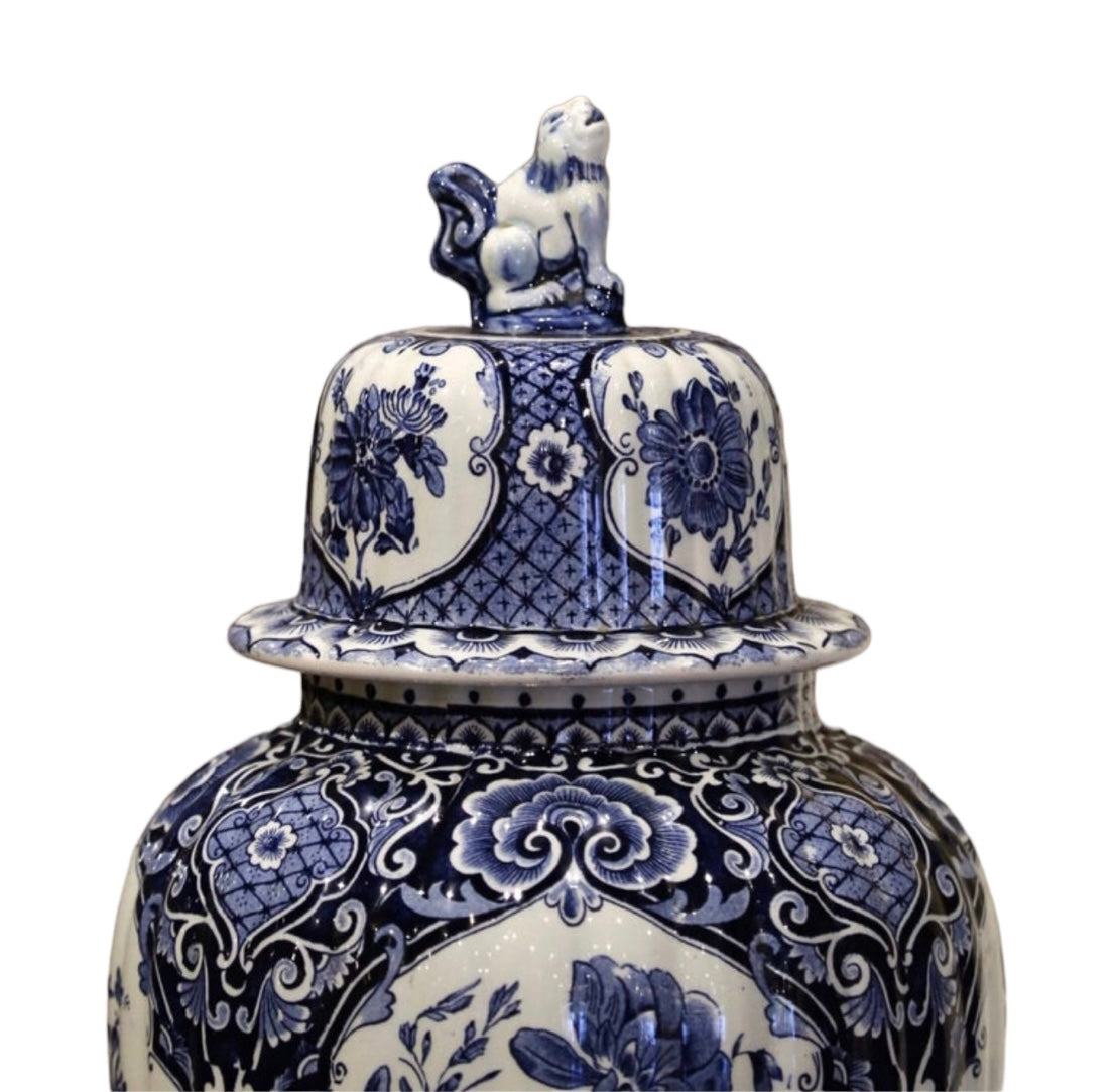 Pair of Mid-20th Century DELFT Ginger Jar FOO DOG by Boch Royal Sphinx.
