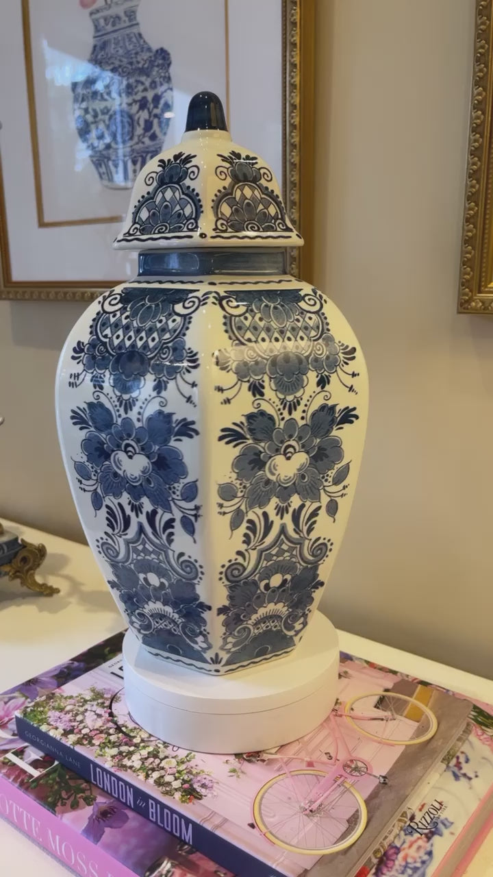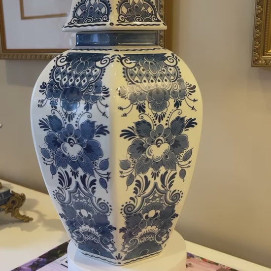Hand-Painted Hexagonal Floral Ginger Jar. Royal Style.